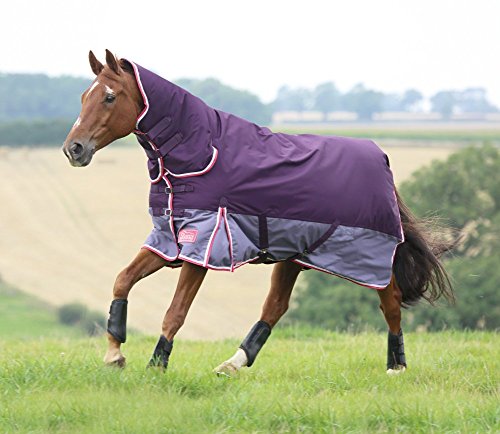 For hardwearing comfort, the Highlander Original rugs benefit from deep shoulder gussets for freedom of movement. Turned out horses will love the 300g warm fill of this heavy weight turnout rug which incorporates a contour neck cover for top to tail winter protection. Fully lined, with a 600 denier waterproof and breathable ripstop outer. Features include twin buckle fastenings, adjustable cross surcingles, adjustable fillet strap, tail flap, integrated leg strap loops (legstraps not included). The integrated contour neck cover fastens with twin touch close straps. Colour: Purple two tone.
