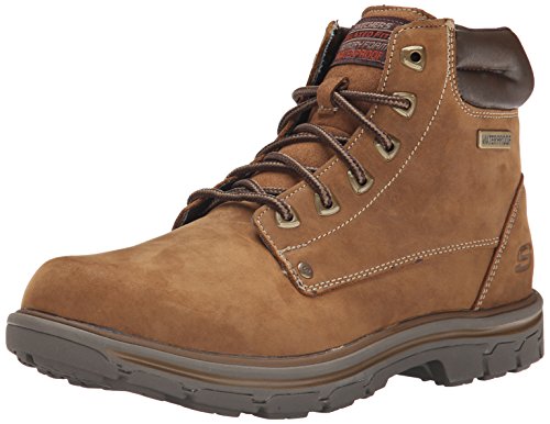 Outclass the seasons wearing the SKECHERS Relaxed Fit®: Segment - Amson boot. Waterproof smooth leather or nubuck leather upper in a lace up casual comfort ankle boot with stitching and overlay accents. Gel Infused Memory Foam insole.